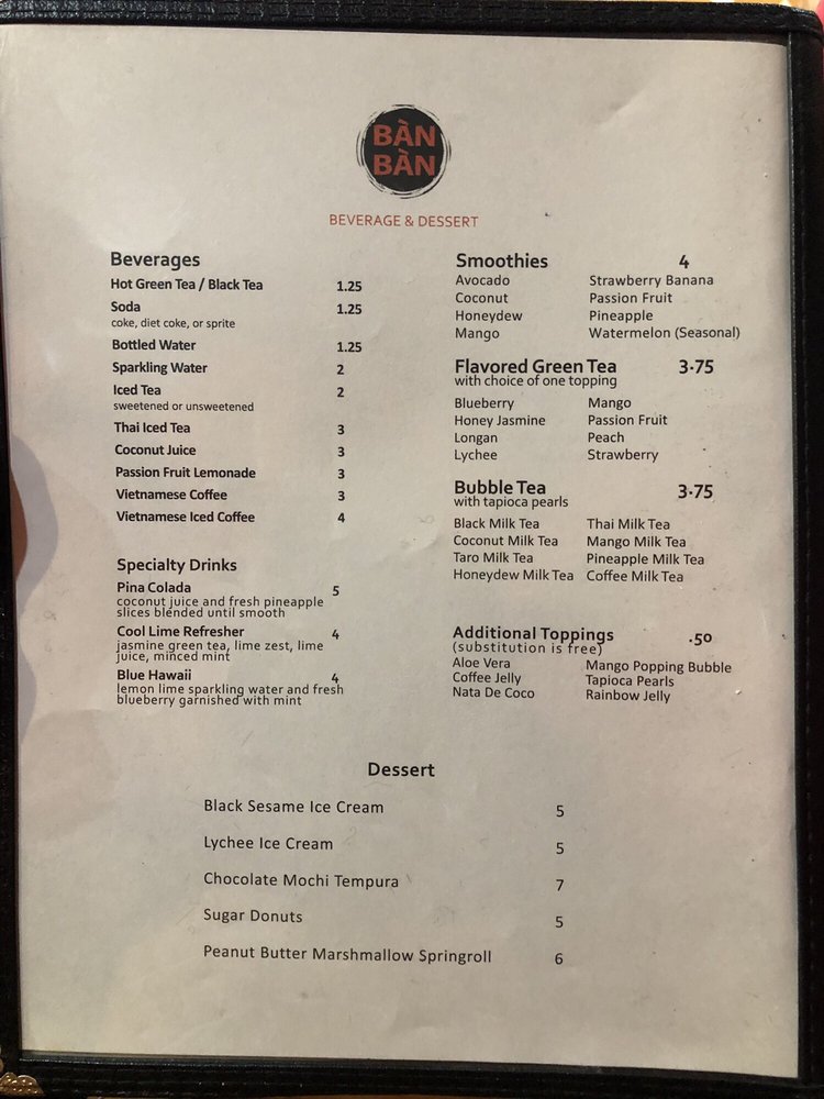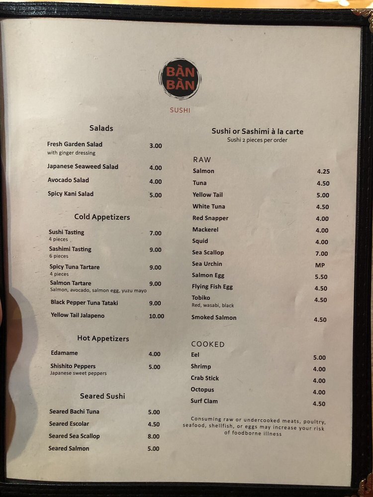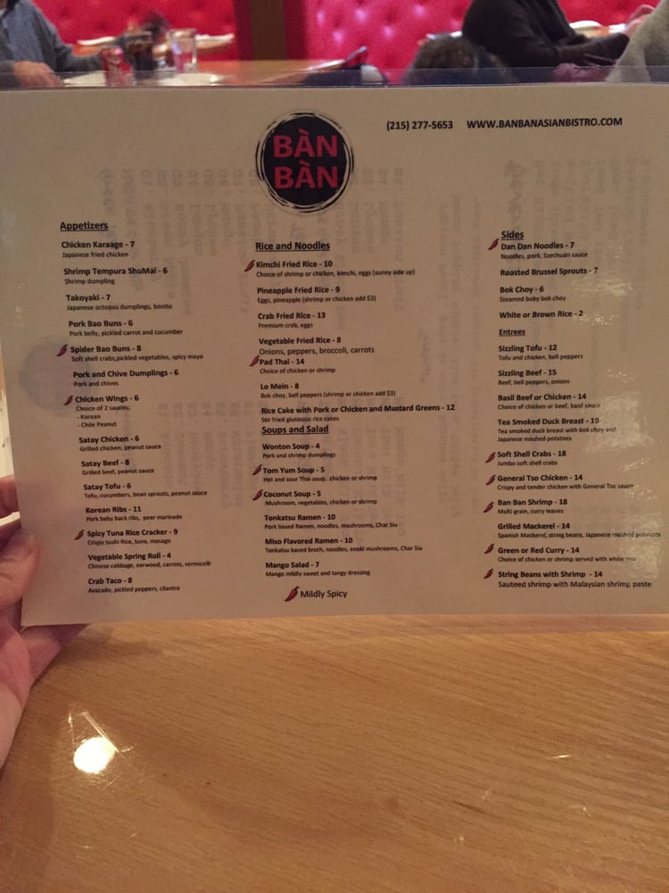 Introducing the menu at Ban Ban Asian Bistro in Abington, PA - a trendy and classy spot offering a variety of Asian delights. From savory scallion pancakes to spicy Szechuan cucumbers, the appetizers are bursting with flavor. The miso soup and ahi tuna salad in the soup and salad section are must-try options. For main courses, the Drunken Noodles and Sweet & Sour Chicken come highly recommended by customers. Don't miss out on the fresh sushi rolls and the General Tso's tofu for a unique twist. With plenty of vegan options and gluten-free choices, there's something for everyone at Ban Ban Asian Bistro. Stop by for a delicious meal or order delivery for a taste of authentic Asian cuisine.